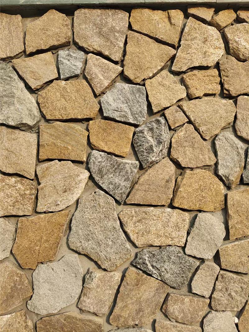 虎皮黄蘑菇石 外墙条形文化石 黄石凝光 天然黄锈石碎拼石与传统石材规整的排列不同,碎拼石的美在于“无序中的秩序”。施工时需要用不同大小的石块交错排列,避免形成机械的几何图案。我尝试将大块的黄锈石作为“主角”,周围用小块石材填补缝隙,仿佛自然风化形成的岩壁。勾缝时特意选用与石材相近的灰色水泥,让缝隙隐于无形,增强整体的自然感。实用价值:自然美学与功能性的平衡防滑耐磨的户外首xuan。黄锈石碎拼石表面的荔枝面或火烧面处理,使其在雨天也能提供良好的防滑效果。我家庭院铺装的碎拼石地面,即使在梅雨季也能从容行走,且经过两年使用依然坚固如初。长时间暴晒可能导致黄锈石表面泛白,建议在北阳台或树荫下使用,或在每年夏季涂抹专ye的石材防护剂。清洁时使用中性清洁剂,避免钢丝球等硬物刮伤表面。每季度用石材养护油进行保养,可保持其温润的光泽。