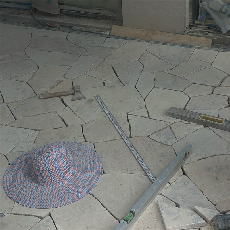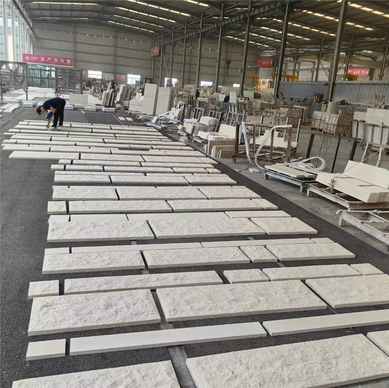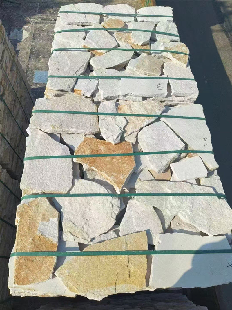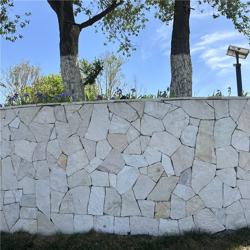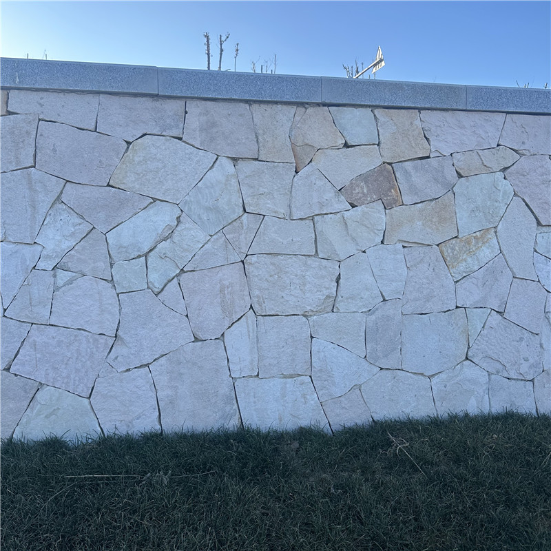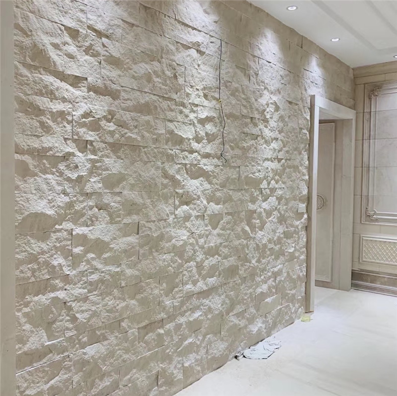 超白洞石大理石 白色莱姆石石材 现代简约 白砂岩文化石碎拼石是一种极具特色的建筑装饰材料。以下是关于它的详细介绍:材质与外观白砂岩碎拼石由天然白砂岩切割、破碎而成。其颜色并非单一的纯白,而是呈现出米白、带着淡淡米黄或灰白等丰富的色调层次,部分石材表面还会因矿物质分布形成细微的纹理色差。白砂岩本身质地细腻,表面带有天然形成的层理纹或细微孔洞,碎拼工艺让每一块石材形状各异,有的呈多边形,有的边缘带着自然崩裂的弧度,拼接后缝隙错落有致。物理性能白砂岩密度较低,重量轻于花岗岩、大理石,便于运输与施工。其吸水率适中,经过表面防护处理后,能有效抵御水分渗透,可用于户外或潮湿环境。同时,白砂岩碎拼石耐磨性良好,日常踩踏或摩擦不易留下明显划痕,且导热性较低,使用舒适度较高。此外,白砂岩属于环保石材,天然无辐射。应用场景