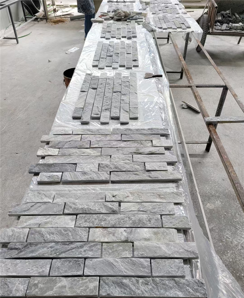 杂色蘑菇石贴面 云灰文化石 中式园林 灰色碎拼石冰裂纹石材以天然灰色石材为原料,经切割成不规则碎块拼接而成,兼具石材的坚韧质感与碎拼形态的野趣,是传递自然质朴、沉稳高级氛围的优zhi装饰石材。它打破规整石材的刻板感,以 “不规则拼接” 还原自然岩石的原生状态,又以百搭的灰色调适配多元场景,既能点亮户外景观,也能柔化室内空间,成为自然风、侘寂风、现代简约风设计的热门选材。