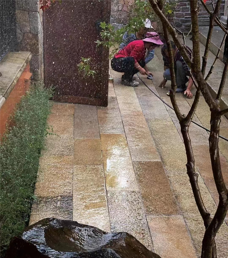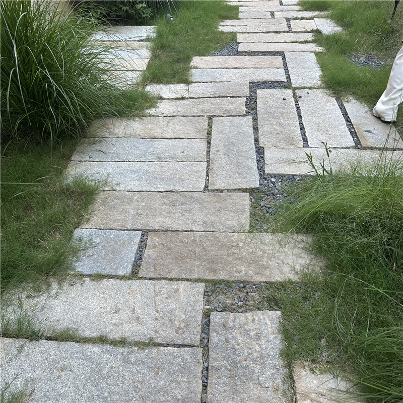 黄砂岩条石地面 红条石 庭院装饰 老石板台阶石厂家多选用历经岁月沉淀的天然青石、砂岩或板岩,表面带自然磨损痕迹与温润包浆,兼具石材的坚硬耐用与 “时光雕琢” 的复古气质,适配新中式、日式枯山水、乡村野趣等多种装饰风格,是连接空间层次、传递自然复古氛围的you质选材,其特性与应用可从材质质感、场景适配、搭配养护三方面展开。从材质与质感特性来看,老石板台阶石的 “岁月痕迹” 与 “物理性能” 是核心亮点。材质上,以天然青石和老砂岩为主:青石老石板色调呈深灰、青灰,表面经长期使用形成细腻包浆,触摸温润不冰冷,部分保留天然裂纹与凿痕,自带 “古朴厚重” 感;砂岩老石板多为米黄、浅褐,表面带砂质纹理,磨损痕迹更明显,边缘常呈自然破碎状,传递 “山野原生” 的野趣。规格上,厚度多为 30-50mm,宽度 300-600mm,长度依台阶需求定制,单块石板重量适中,既保证承重性(单块可承重 500kg 以上),又便于安装。独特的是,每块老石板的纹理、磨损痕迹均不相同,拼接后能形成 “一步一景” 的自然韵律,相比新石材更具故事感。在场景应用中,老石板台阶石能凭借复古质感适配多样空间。室外场景里,它是打造自然庭院的理想选择:可用于别墅庭院的ru户台阶,选用青石板台阶石,台阶高度 150-180mm,宽度 600mm,侧面搭配浅灰色鹅卵石收边,台阶缝隙间种植苔藓或低矮地被,与庭院景墙、木质廊架相映,营造 “中式庭院” 的雅致氛围;也可用于乡村民宿的山坡步道台阶,采用砂岩老石板,随地形高低错落铺设,边缘保留自然破碎感,搭配藤蔓缠绕的木栅栏与蕨类绿植,让步道如同山林间的古径,传递 “回归自然” 的惬意,适合乡村庭院、生态公园的景观改造。室内场景中,老石板台阶石适配复古与自然风格需求:用于复式住宅的室内楼梯,选用青石板台阶石,搭配原木扶手与暖光壁灯,石板表面的包浆与木材的温润碰撞,营造 “新中式” 的雅致氛围,台阶侧面可雕刻简约花纹,提升细节精致感;若用于 loft 公寓的错层台阶,采用砂岩老石板,搭配水泥墙面与黑色金属护栏,粗糙的石板肌理与工业风元素融合,凸显 “复古工业” 的个性;用于玄关与客厅的过渡台阶,用老石板搭建 1-2 级矮阶,搭配浅灰色地砖,既能明确空间分区,又通过复古石板缓解进门的匆忙感,提升归家仪式感。搭配与养护方面,需注重 “风格协调” 与 “针对性防护”:老石板台阶石的复古质感需避免与过于精致的材质(如亮面瓷砖、水晶吊灯)大量搭配,以防风格割裂,建议与原木、青砖、粗陶等复古材质组合,空间基底以中性色(灰、白、原木色)为主,少量用绿植、复古摆件点缀,强化岁月氛围。养护上,室外使用时,每 2-3 年涂刷一次石材专用防护剂,防止雨水渗透导致青苔滋生或色泽变深;室内使用时,定期用干布擦拭表面浮尘,污渍可用中性清洁剂 + 软刷清理,避免用酸性清洁剂,防止腐蚀表面包浆;若表面出现轻微磨损,可涂抹少量石材养护蜡,恢复温润质感,延长使用寿命。无论是室外庭院的景观台阶,还是室内空间的过渡矮阶,老石板台阶石都能凭借岁月沉淀的质感与天然石材的耐用性,为空间注入 “古朴自然又不失实用” 的氛围,成为连接空间、传递故事感的you质装饰材料。