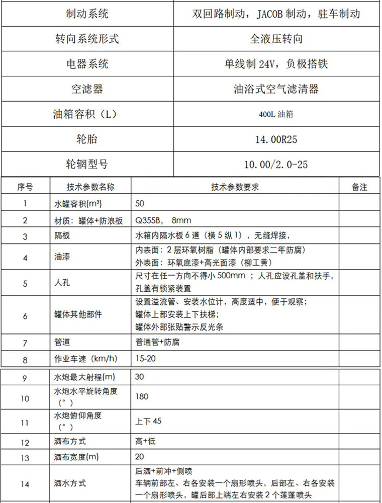 5、洒水炮最远射程≥25米。