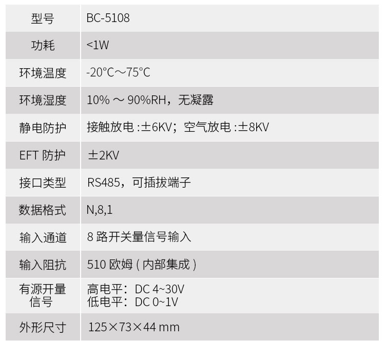 8路直流信号输入采集模块_开关量采集模块BC-5108