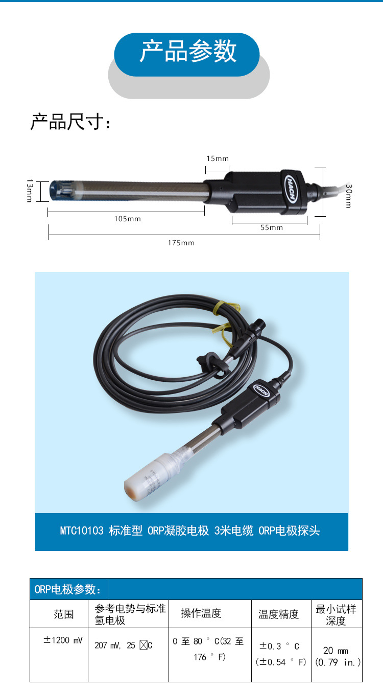 美国HACH哈希ORP电极氧化还原电位3米长 MTC10103
