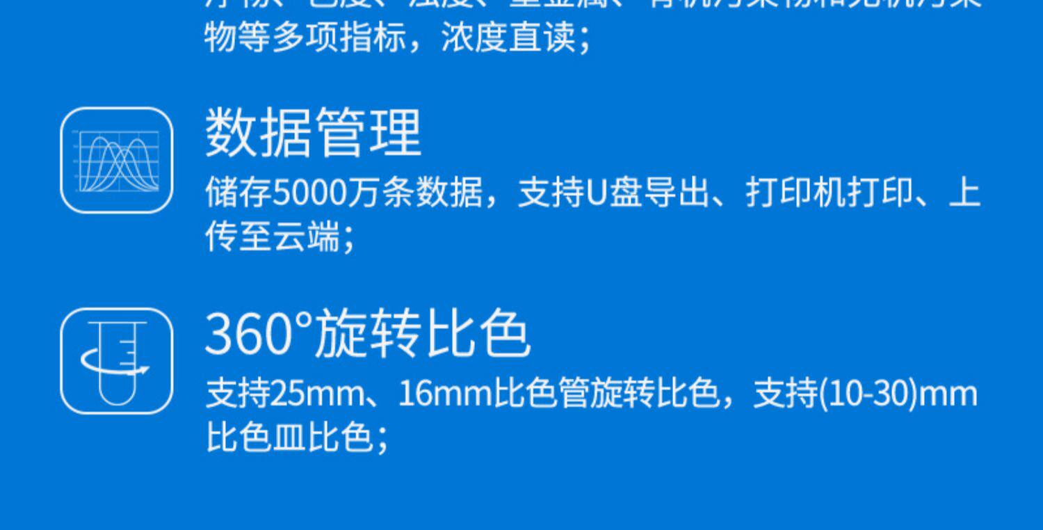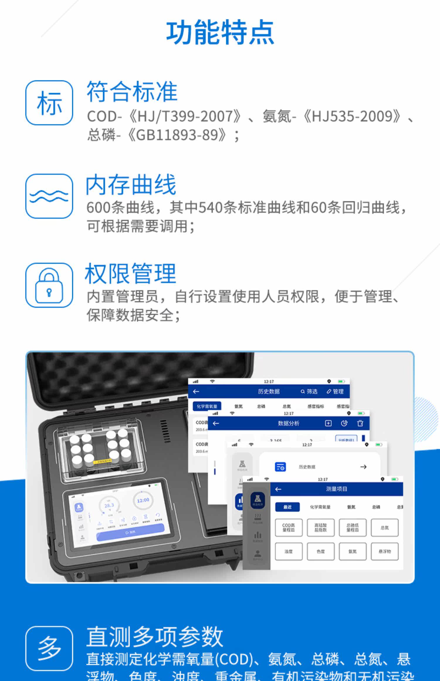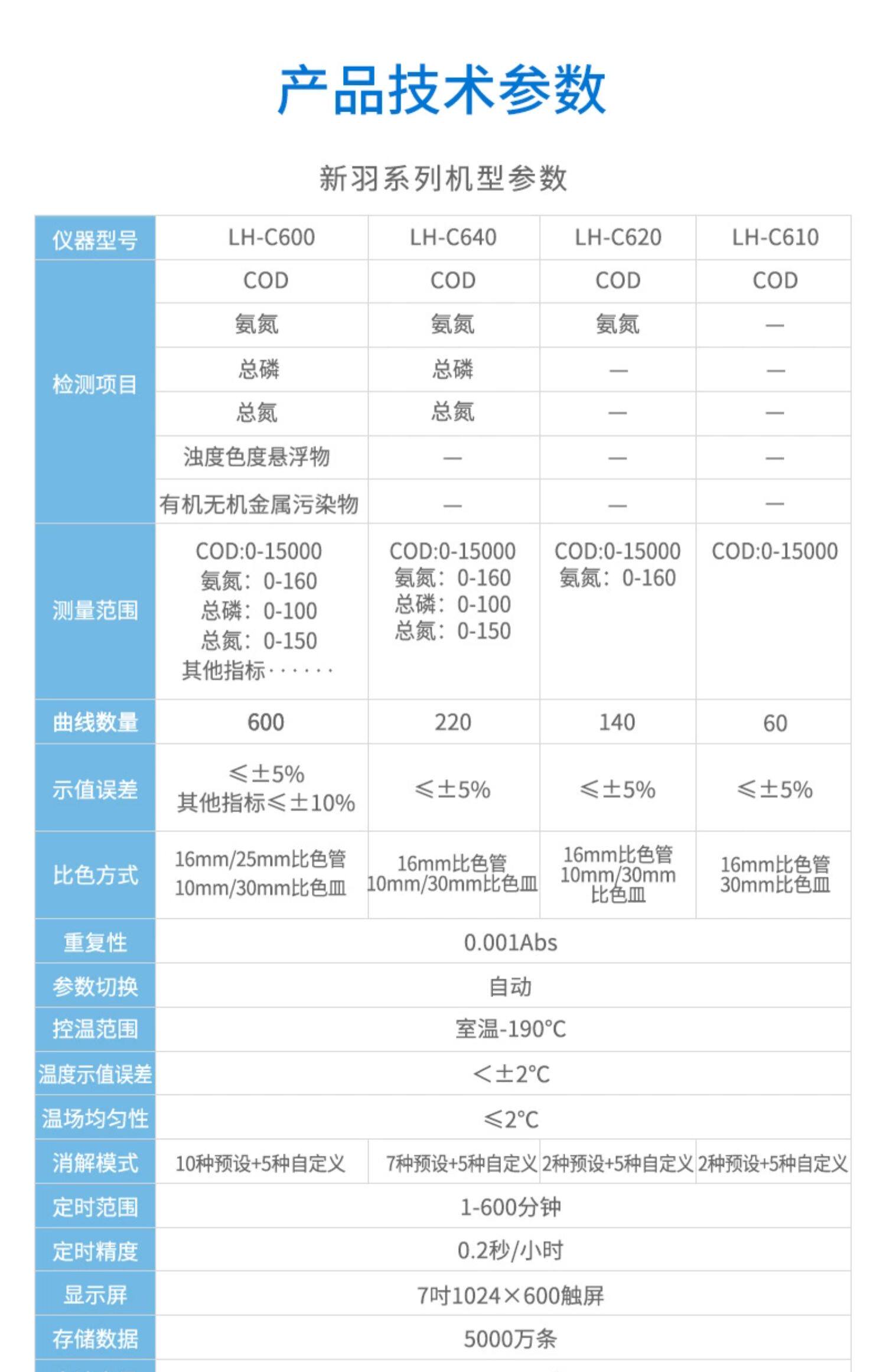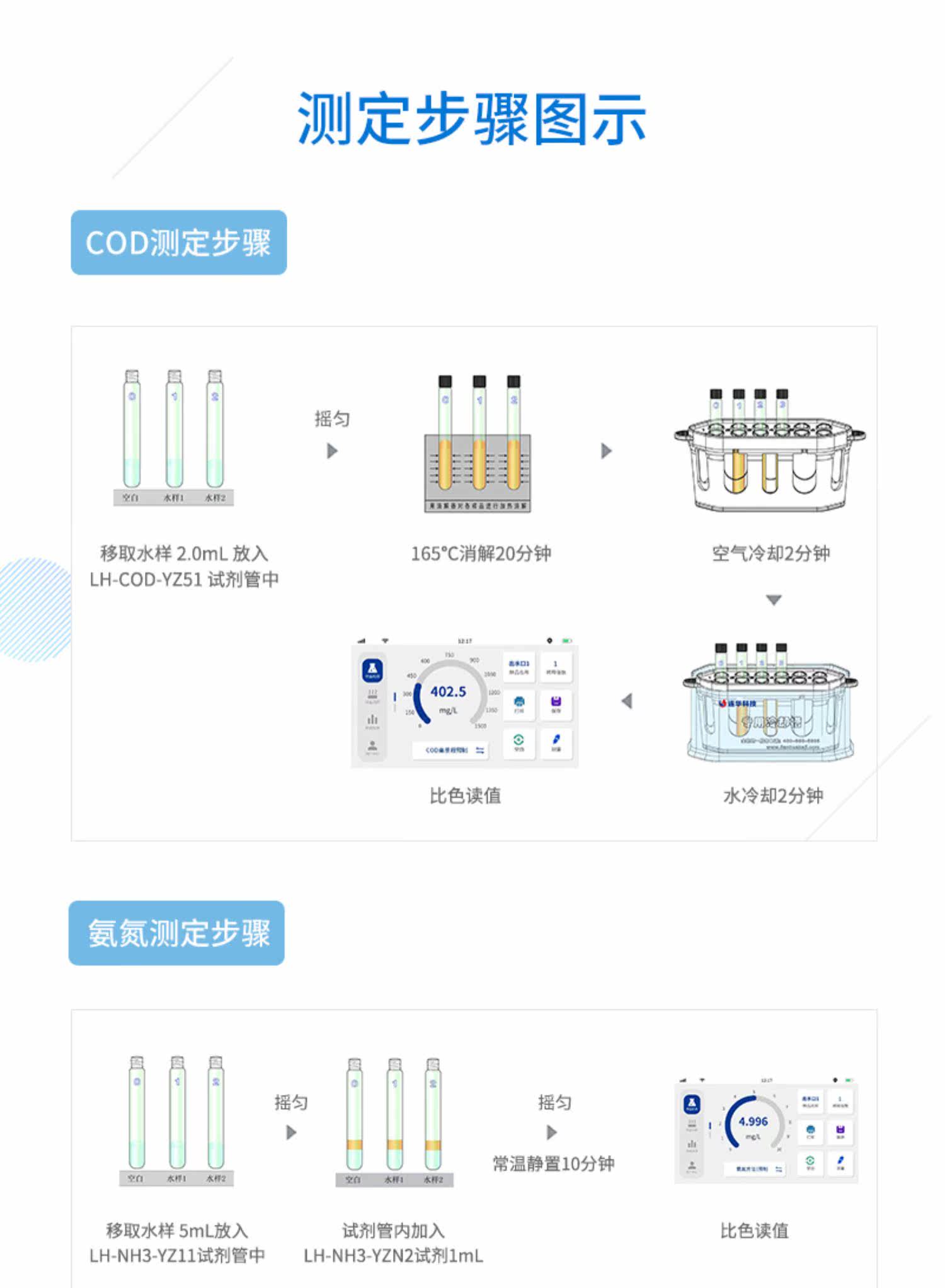 COD:(0-15000)mg/L、氨氮:(0-160)mg/L、 总磷:(0-100)mg/L、总氮:(0-150)mg/L