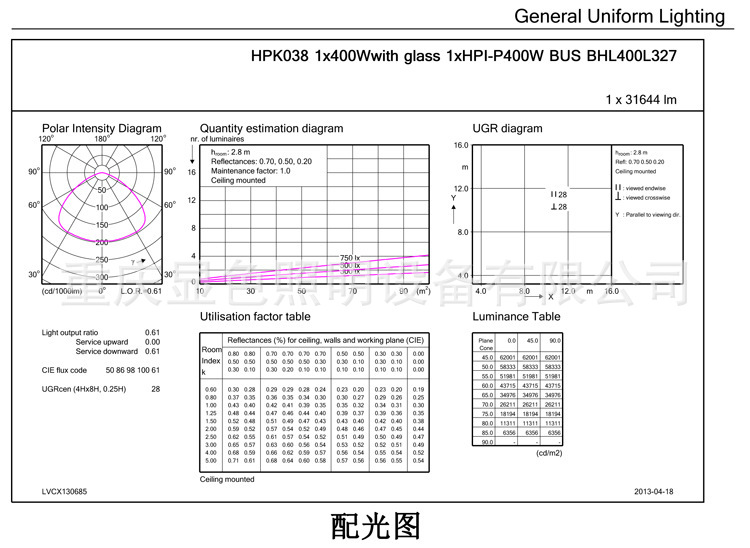 ● 高性价比 :相对于HPK138价格更低 ● 光效优秀 :欧标金卤灯,较美标显色性更好,光衰更慢,表现更稳定 ● 耐久舒适 :柔和白光,均匀照亮空间,较美标光源更少炫光