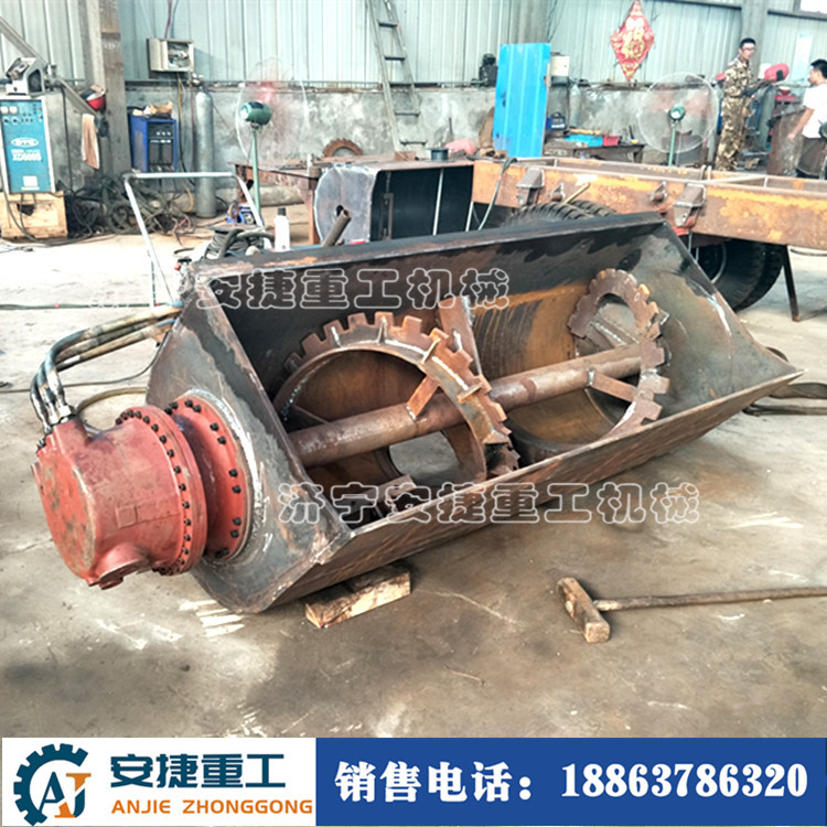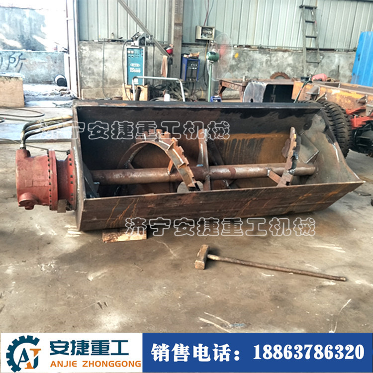 二是利用一台装载机把铲斗部位拆除,安装上铲斗式搅拌缸及其配套系统就是一台装载机铲斗式混凝土搅拌机,实现自行上料、拌合、 转场、卸料功能。