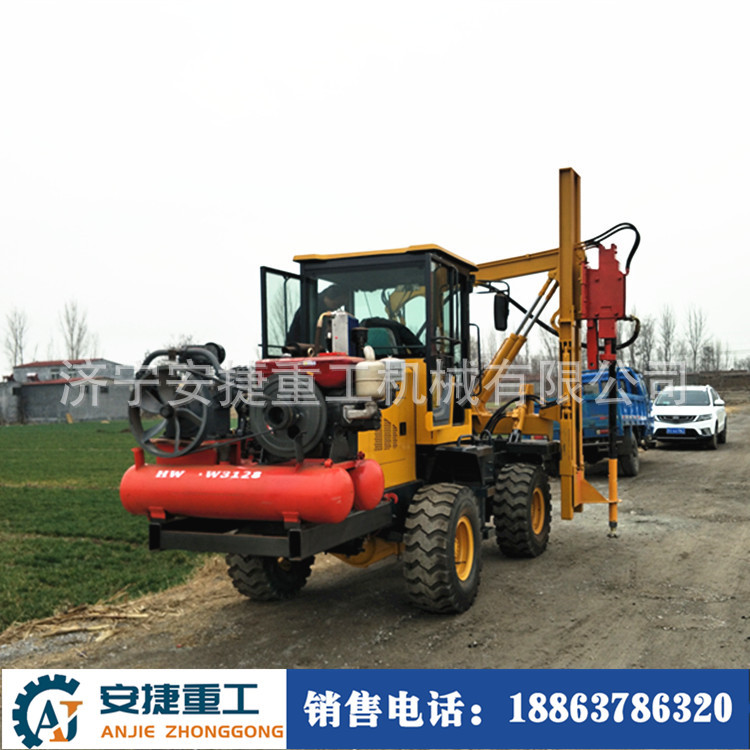 此款打桩机是装载式打桩机的加强款,配备空压机,动力更加强劲,性能更加稳定!此款打桩机是集装载、打桩、钻孔等功能为一体的新型产品。采用全新设计理念、精心研制整体功能,结构模块化兼顾的设计思想,全封闭各木式安装结构,更利于产品快速安装和转场,可广泛运用于公路、高速等路面护栏的桩孔钻进工作