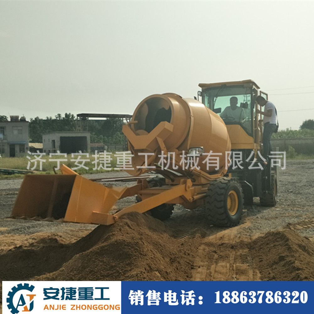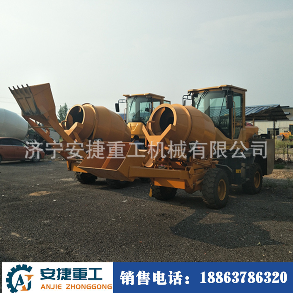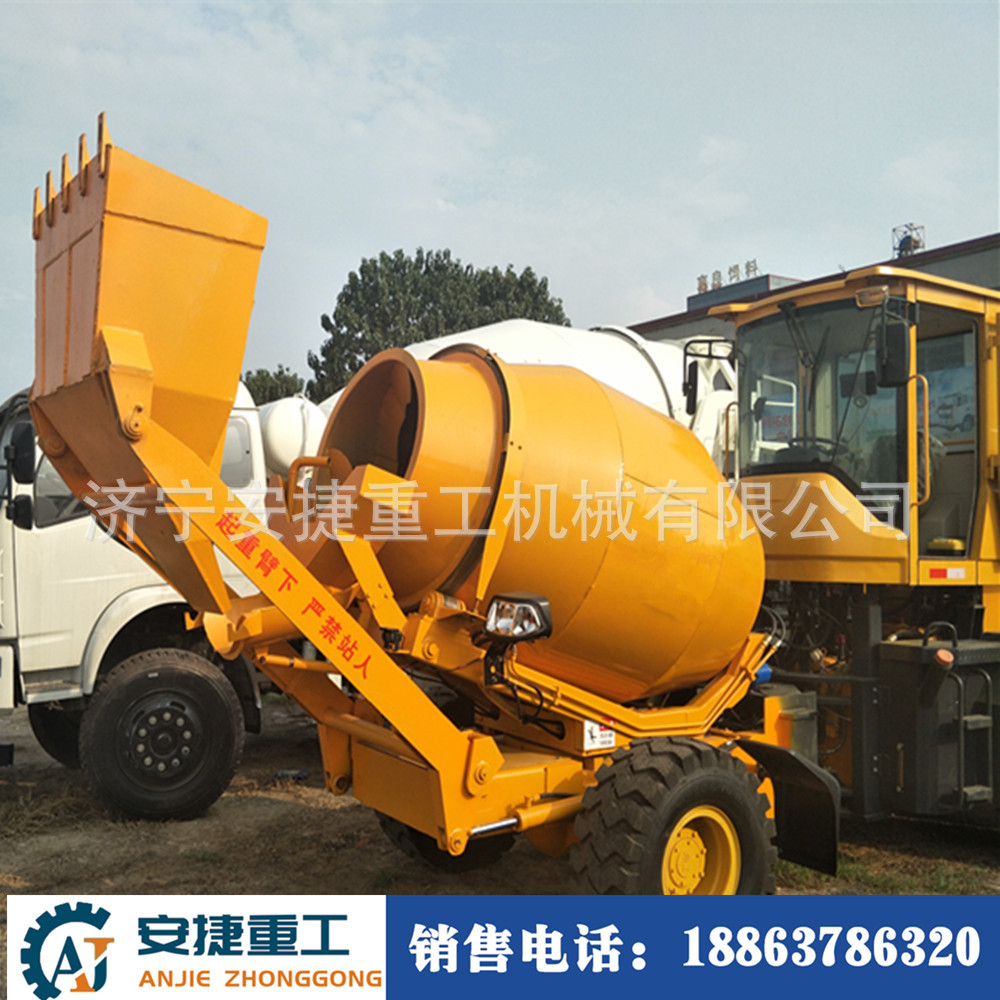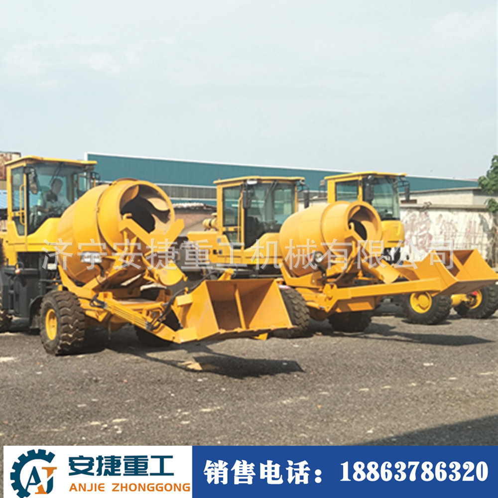 济宁安捷重工机械有限公司生产各类工程机械:轮式混凝土搅拌罐车、全自动自上料搅拌车、履带式混凝土搅拌罐车、装载机式混凝土搅拌斗、三轮车罐车。