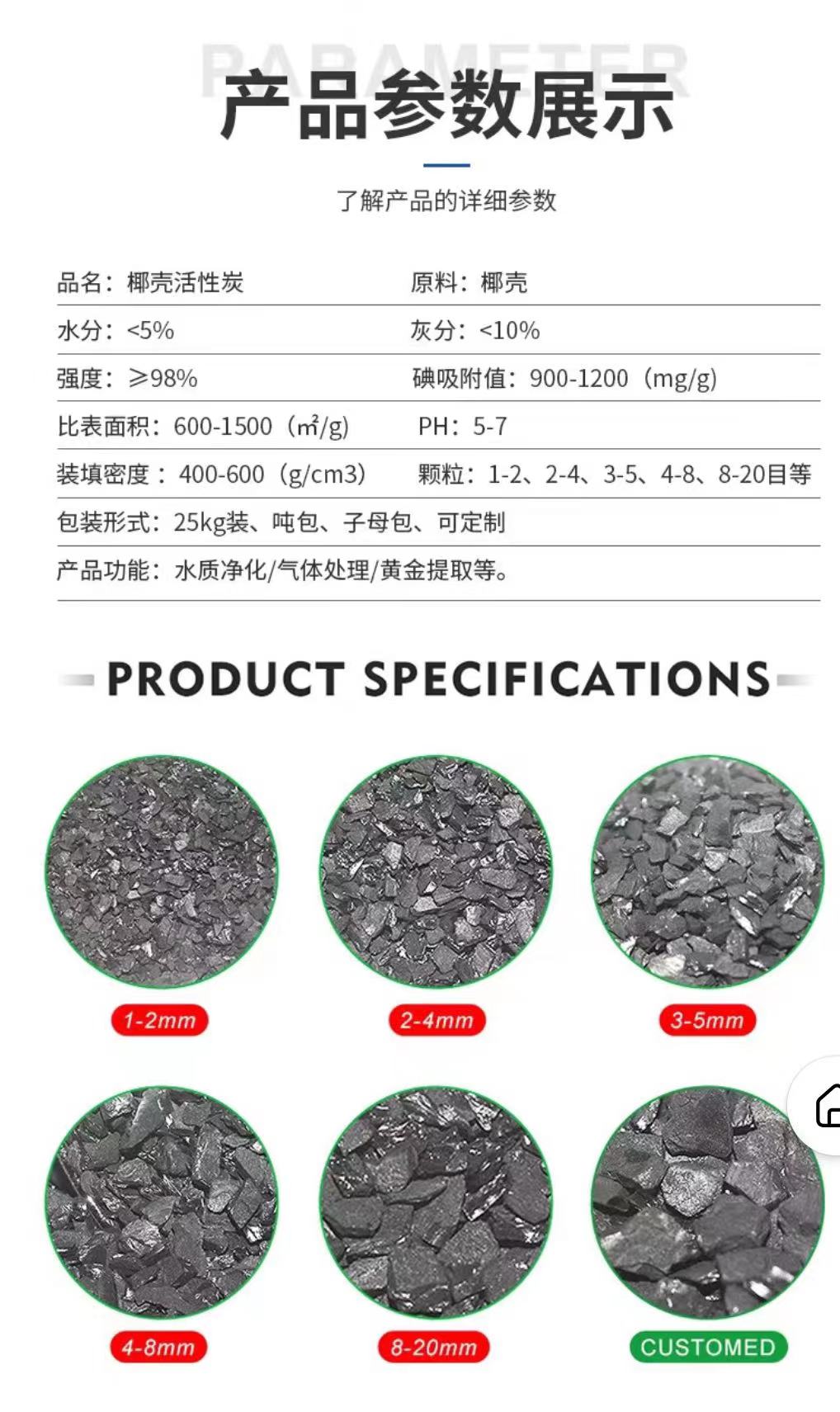 水的净化处理,去除水中的杂质和异味。 净气椰壳活性炭:用于空气净化,去除空气中的有害气体和异味 |