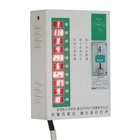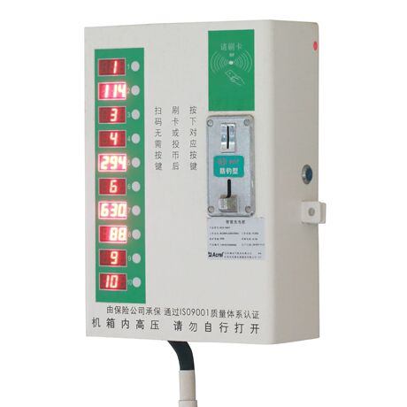 1.可同时充10辆电瓶车。2.内部空间大,投币箱容量大,具备充足的电气安全性。3.实体按键设计,手感实在,使用寿命长。4.显示投币数、IC刷卡次数、IC卡余额。5.每次扣费和充电时间可调,可多次投币刷卡,充电时间自动累计。6.可根据客户需求开通免费充电功能。7.可使用微信支付、支付宝支付、APP支付。(只支持两种同时使用)8.具有断电记忆功能,当出现断电,来电后可以继续使用剩余的时间充电。9.具有短路保护功能,当出现短路,保险丝熔断确保安全。 ACX-10DYH 功能1.可同时充10辆电瓶车。2.尺寸空间大,投币箱容量大,内部空间充裕,具备充足的电气安全性。3.实体按键设计,手感实在,使用寿命长。4.显示投币数、IC刷卡次数、IC卡余额,卡内余额语音播报。5.每次扣费和充电时间可调,可多次投币刷卡,充电时间自动累计。6.可根据客户需求开通免费充电功能、月卡功能和刷卡退费。7.可使用微信支付、支付宝支付、APP支付。8.自动识别出现故障的线路,并伴有字母和语音提示。9.具有断电记忆功能,当出现断电,来电后可以继续使用剩余的时间充电。10.具有拔掉断电功能,当用户拔掉充电器,及时自动断电。11.具有充满自停功能,自动检测电瓶车充电状态,如充满则停止供电,计费时间清零。12.具有过载保护功能,能识别大功率电器,自动暂停供电,防止用户私接插线板给多台电瓶车充电。13.具有短路保护功能,当出现短路,保险丝熔断确保安全。14.具有按功率给时间功能,根据检测到的功率,按照设定时间开启充电。15.可选配联网烟感,当出现火情,可发送短信给指定责任人。16.过温保护功能,当检测机箱温度过高,停止充电。17.夜间断电功能,可设定夜间整机断电黑屏,禁止夜间充电。18.远程抄表,485电表数据采集上报。10.具有拔掉断电功能,当用户拔掉充电器,及时自动断电。11.具有充满自停功能,自动检测电瓶车充电状态,如充满则停止供电,计费时间清零。12.具有过载保护功能,能识别大功率电器,自动暂停供电,防止用户私接插线板给多台电瓶车充电。13.具有短路保护功能,当出现短路,保险丝熔断确保安全。14.具有按功率给时间功能,根据检测到的功率,按照设定时间开启充电。