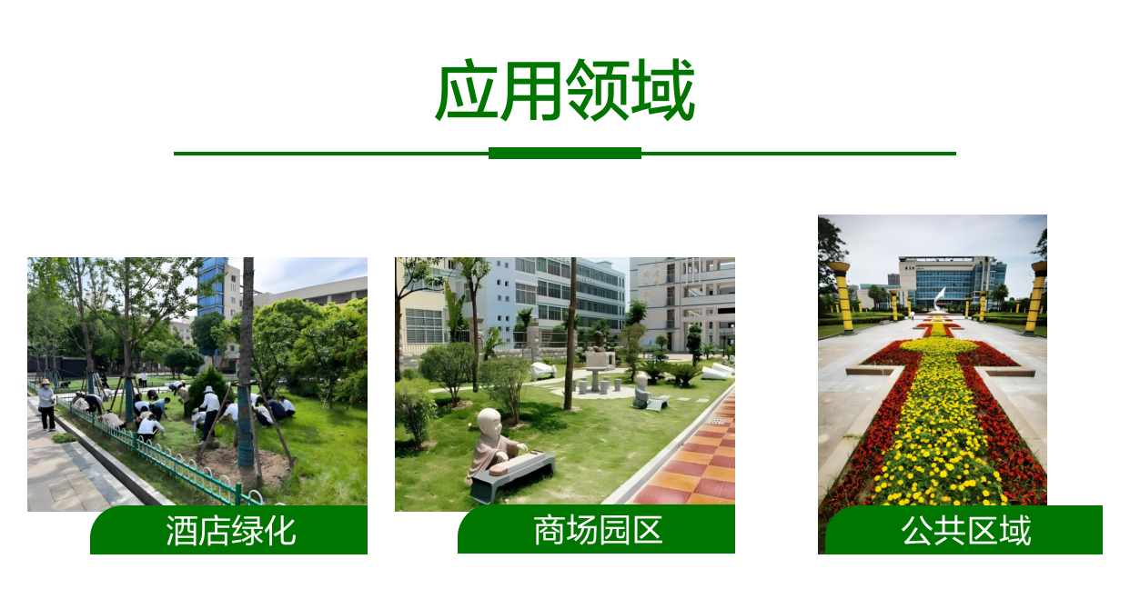 街道绿化,广场绿化,学校,翳院,小区绿化等 |