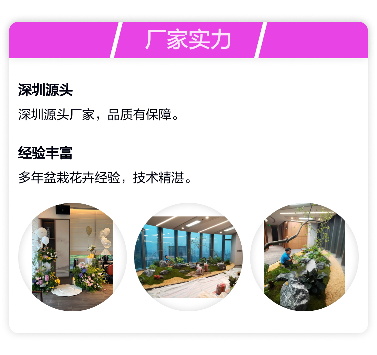 深圳市南韵竹风景观园林有限公司自建立以来,本着生命需要绿色,绿色就在身边的环保理念,绿色生活从心开始的服务标准,我们愿与您携手共创一 个绿色的环保空间.以客户省心,省时,更省钱的经营理念,不断满足客户日益提高的服务要求,致力于向客户提供的服务.