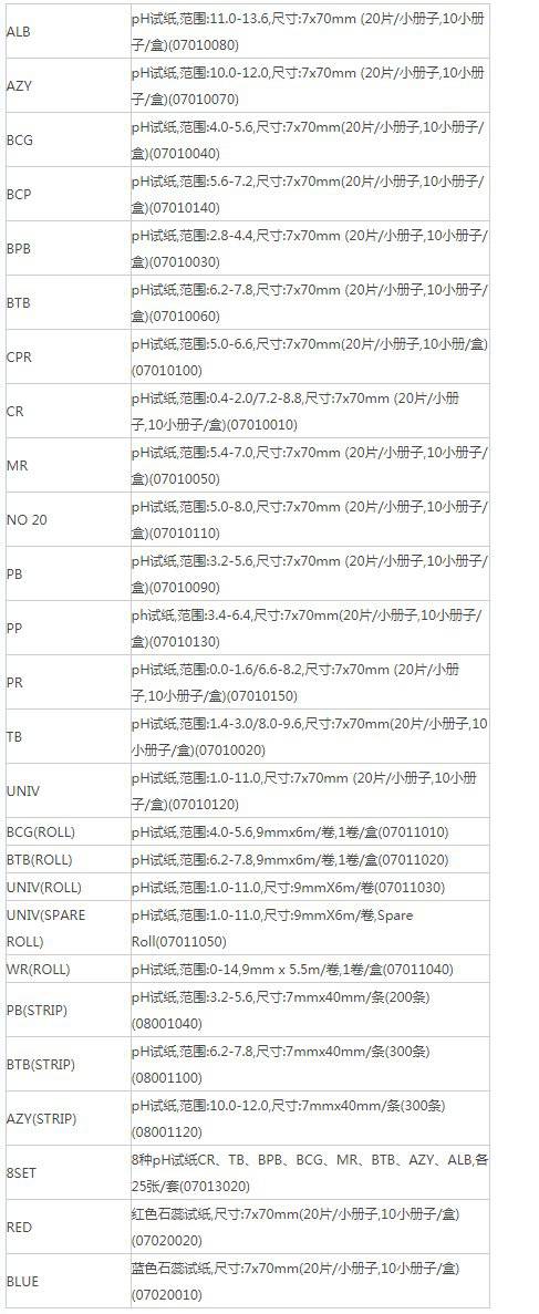 WR(全范围)试纸(货号:07011040)