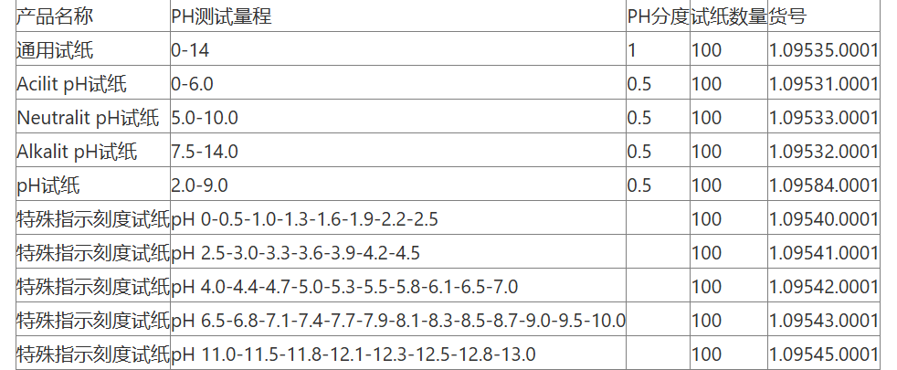 说明一般描述MQuant pH检测适用于环境分析和工业过程控制中的所有介质。通过我们这种特殊的方法生产的pH指示剂试纸条,较普通的试纸有非常明显的优势:由于指示剂不会渗出,所以可以将试纸条直接留在测试介质中而不会对其造成污染。这些试纸的使用非常容易,通过肉眼观察试纸上反应区域并与色卡区域进行比较,完美地匹配反应颜色,从而对pH值进行半定量测定。巧妙的Safetyedge盒可安全存放并方便的取出试纸条。如需对需要特定pH范围的样品的其他参数进行检测(如Spectroquant,请参见使用说明),我们建议使用MQuant pH试纸条进行预检测。非渗漏 pH 6.5 - 6.8 - 7.1 - 7.4 - 7.7 - 7.9 - 8.1 - 8.3 - 8.5 - 8.7 - 9.0 - 9.5 - 10.0 MQuant®
