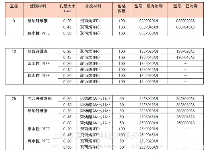 方便使用:每个过滤器清楚标记了识别代号,表示孔径大小,滤膜材料和外壳材料