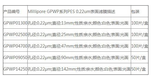 表面滤膜名称:GPWP09050 Millipore Express 0.22um亲水PES白色90mm表面滤膜