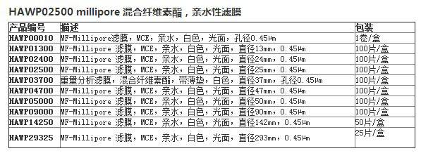 说明:MF-Millipore 表面滤膜,混合纤维素酯,亲水,0.45 m,90 mm,白色,光面