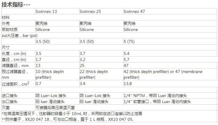 美国Millpore 可换膜针头式过滤器(Swinnex Filter Holder PP)对于Swinnex 47mm过滤哭喊也可用导管与蠕动泵连接进行正压过滤,可过滤较大体积的液体。Swinnex是聚*烯(PP)外壳,带砖硅胶密封圈,***可高压灭菌的滤膜可装上滤膜进行高压灭菌。