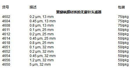 美国***PALL【4612】0.2UM 25mm 一次性已灭菌针头式过滤器