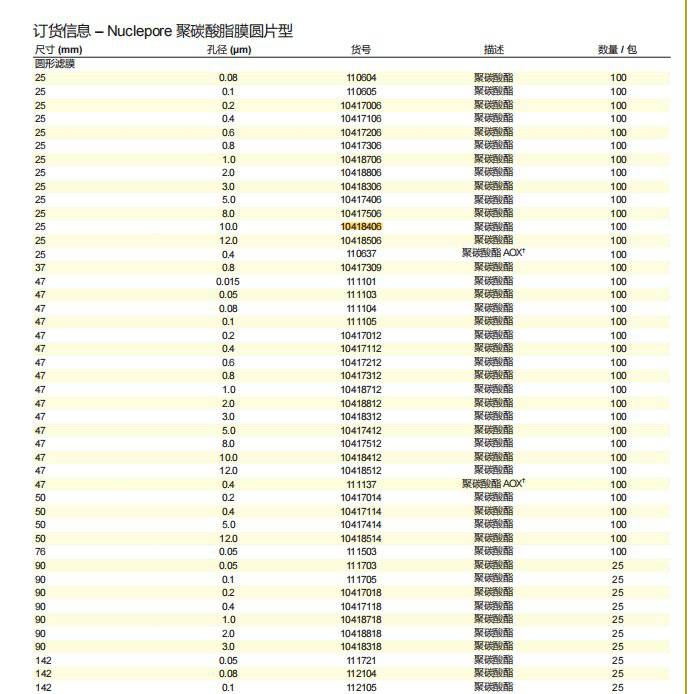 Nuclepore聚碳酸脂膜