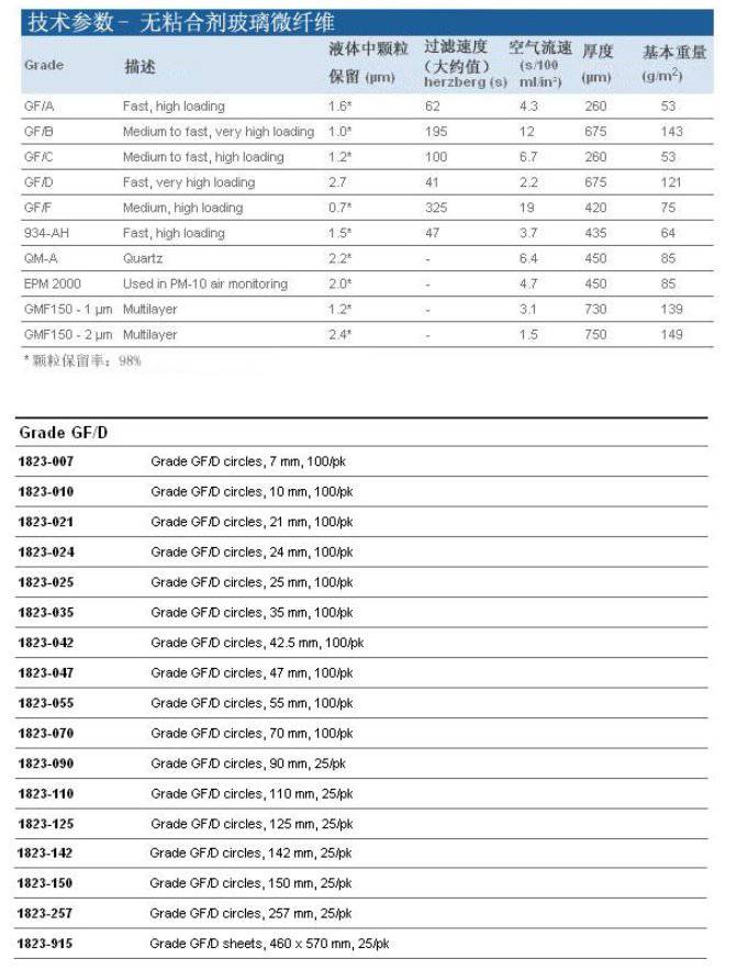 滤。由不同大小来适合大多数滤器。GF/D为保留细小颗粒的