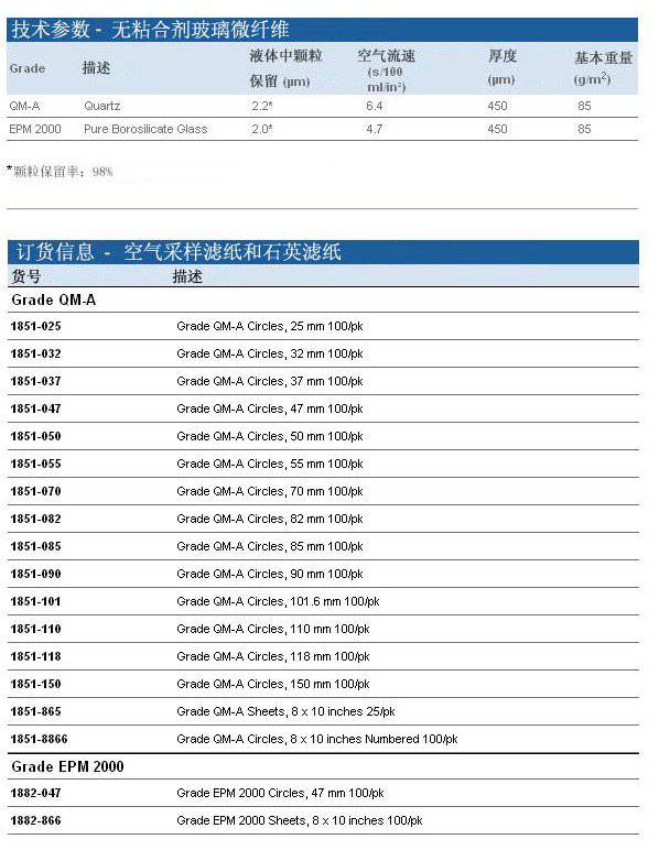 石英纤维滤膜QMA : 2.2μm