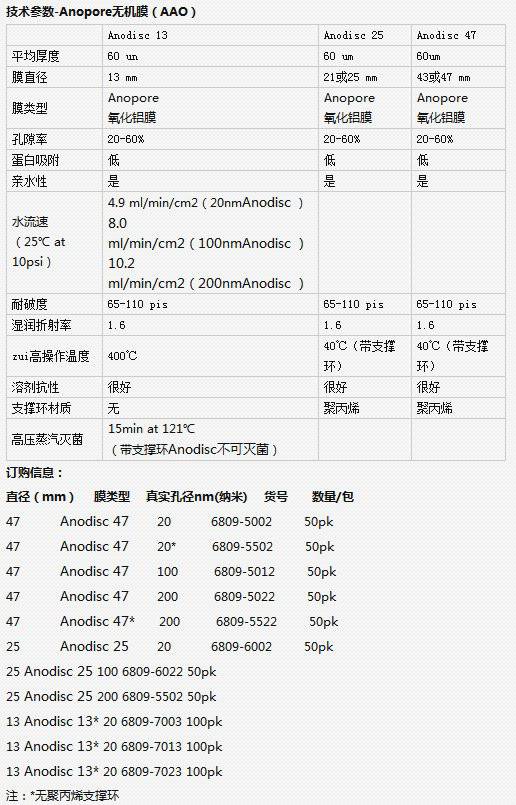 英国Whatman Anopore25无机膜用于HPLC流动相对过滤和脱气、超纯溶剂的制备、比重分析和脂类挤压、电子显微镜扫描研究、.通过落射荧光显微镜分析细菌。