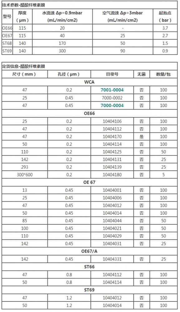 Whatman提供以下纤维素膜:1、纯cu酸纤维素膜;2、纯xiao酸纤维膜;3、xiao酸和xiao酸混合纤维素酯膜。