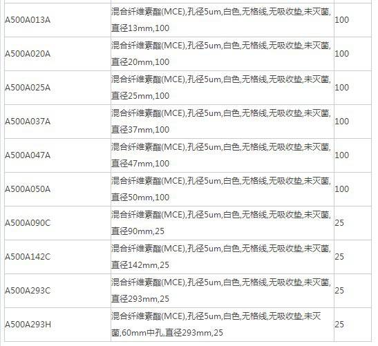 5. 灰分含量:0.002mg/cm至0.005mg/cm,如需灰化处理,请先用酒精润湿过滤膜以免样品损失。