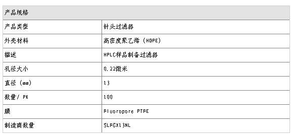 默克密理博孔径0.22um PTFE膜针头式过滤器 SLFGX13NK