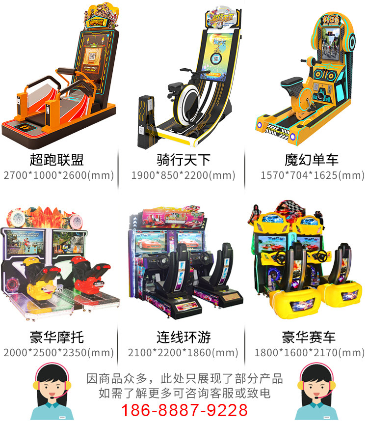 格斗机、摩托、赛车、礼品机、跳舞机等,应有尽有;
