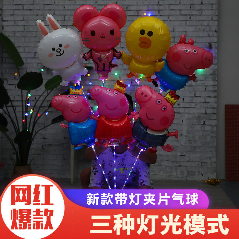 地摊发光卡通充气夹片气球 儿童发光玩具 波波球扫码小礼品