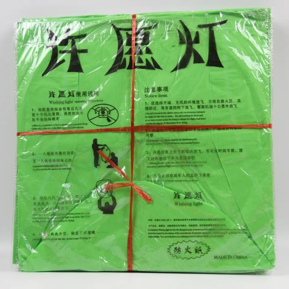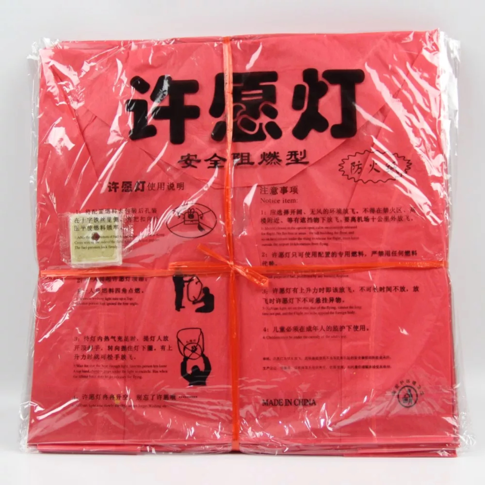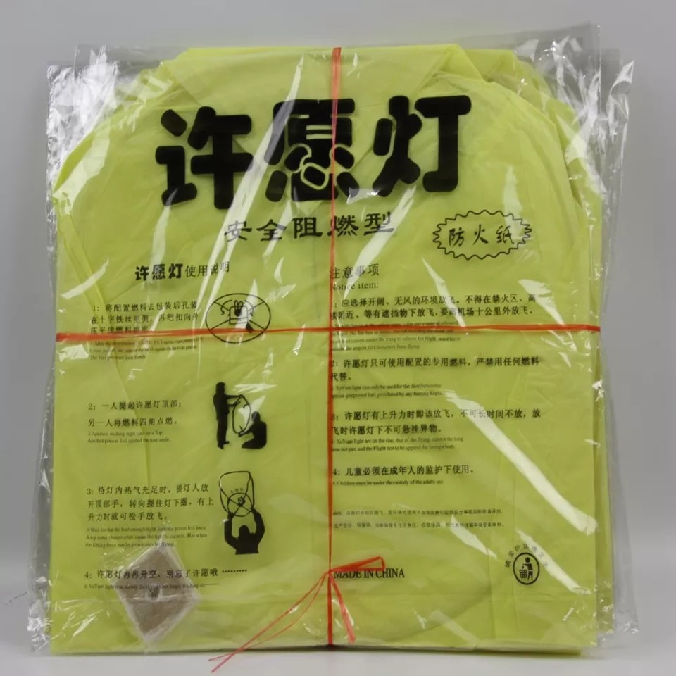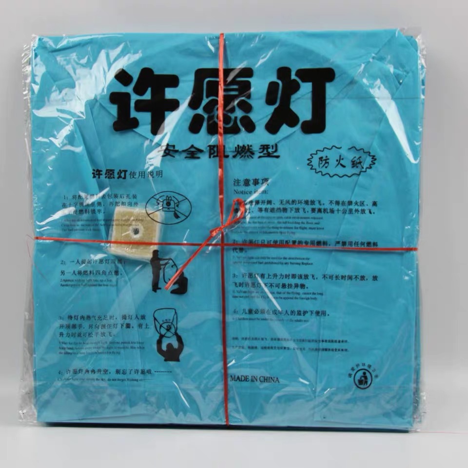 【祝福类孔明灯】灯体印刷带有祝福语的孔明灯,例如:心想事成,出入平安,一帆风顺,万事如意,吉祥如意,恭喜发财,等等(发货具体图 案颜色随机)