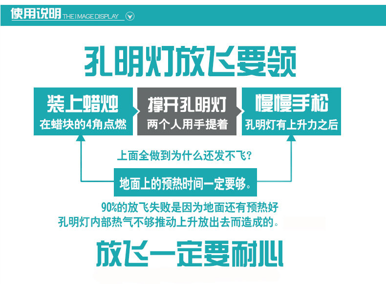 ②孔明灯只可使用配置的专用燃料,严禁用任何燃料代替。