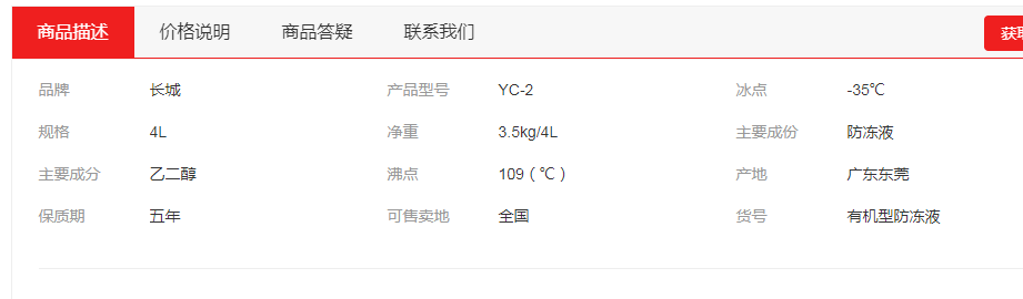 长城防冻液YC2汽车发动机冷却液东山南靖总代理