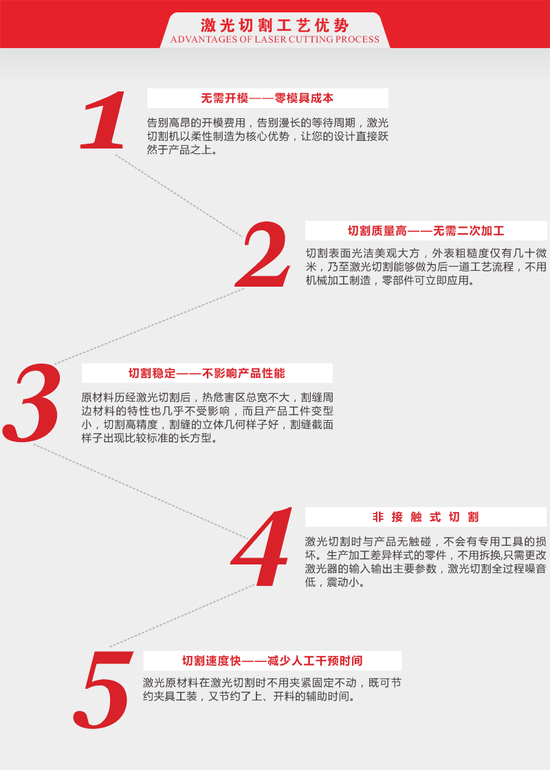 效率更高:切割速度可高达600mm/s以上,数倍于CNC的加工效率