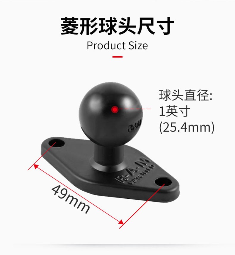 美国RAM 车载手机导航支架金属菱形圆形连接头 ,该菱形球头 可以适配用于RAM等尺寸螺孔间距背夹,也可以用于孔距相同的其它设备及需要固定的产品