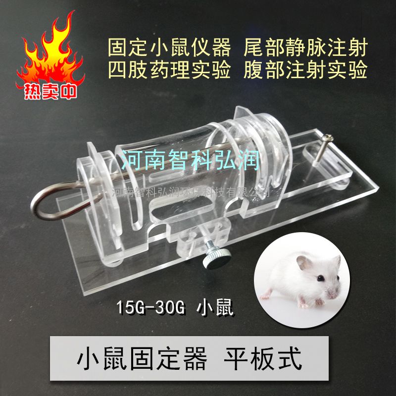型号:ZK-GDQ 150*50mm 产品材料:有机玻璃产品用途:用于固定小白鼠,头尾有闸门固定,四肢可外伸便于引导心电肌电。底层开有腹腔注射孔。鼠头外露,可做慢性电极埋藏手术也可于A、小鼠尾静脉注射。B、用于小鼠尾静脉取血C、用于小鼠尾压痛、烫尾疼痛或电刺痛实验D、用于小鼠足趾肿胀抗炎