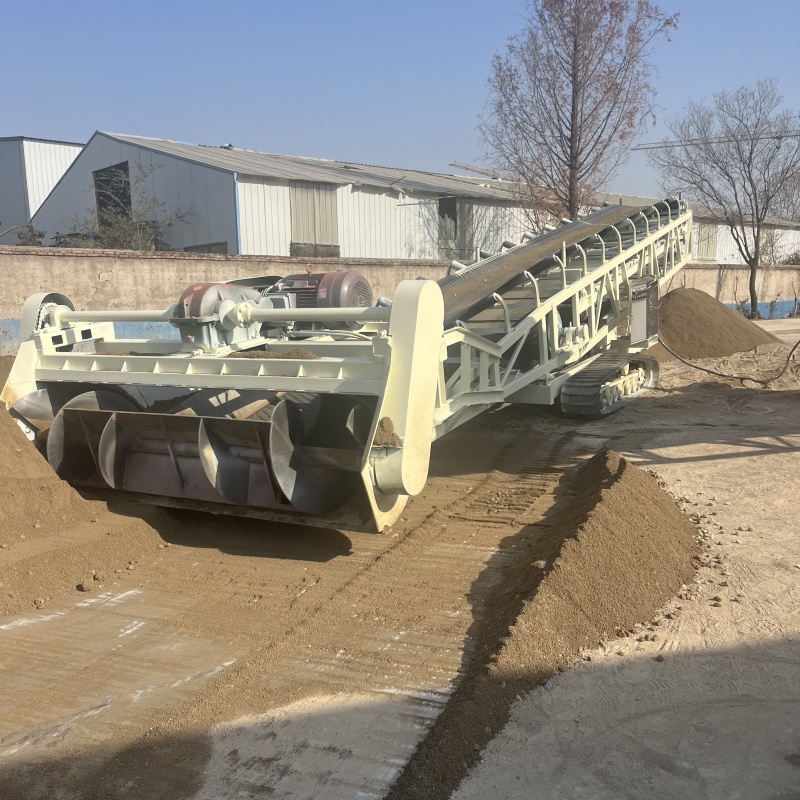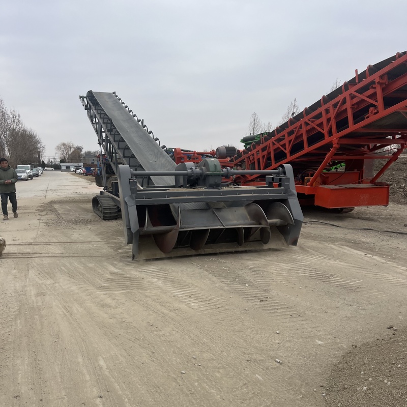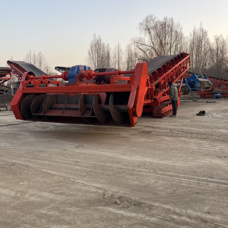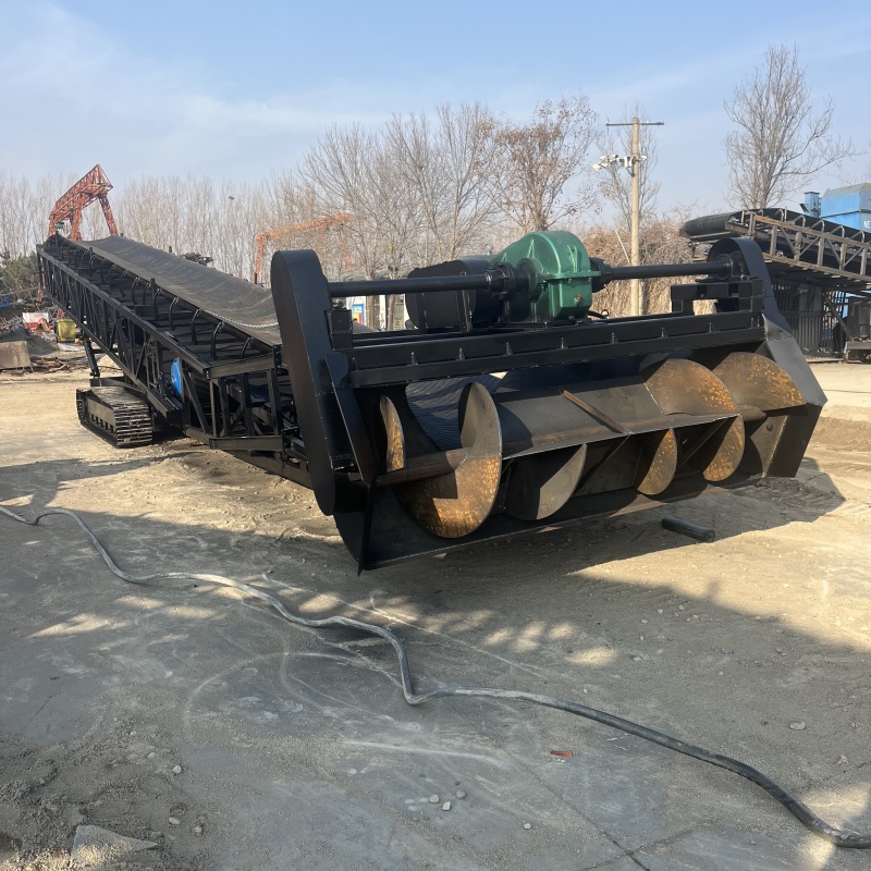 扒料取料输送机价格表(螺旋取料皮带机输送、橡胶履带底盘自行走)