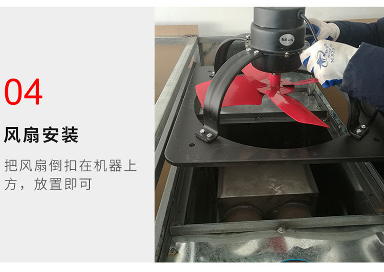 1、使用前安装:机子安装前应选择比较干燥、平整、顶部和四周通风条件较为通畅的地方,找平地面,将主机放置在中间位置,然后开始安装,先将连接杆插入主机地面左右各2个脚,然后将左箱体打开,将箱体下面2个方管孔插入连接杆的另一端,然后再拿2根连接杆将主机和左箱体的上面连接好,然后连接后门板,这样左箱体连接成功,右箱体依次类推,机器安装成功。
