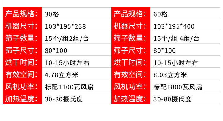 烘干量:约600斤鲜货(30格)/约1200斤鲜货(60格)
