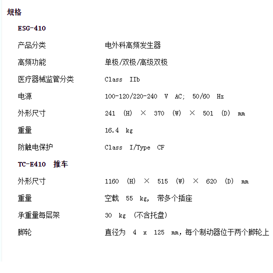 产品描述:ESG-410 电外科高频发生器为您提供的切除性能以及手术组织管理技术。 硬件和软件的进步为