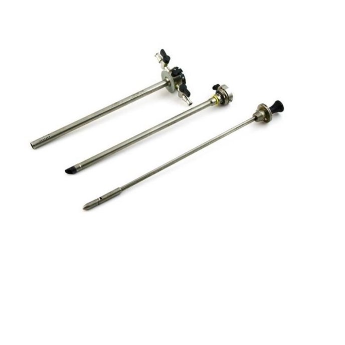 该产品由光学视管、管鞘、目镜盖、工作插入部、密封帽和手术器械组成