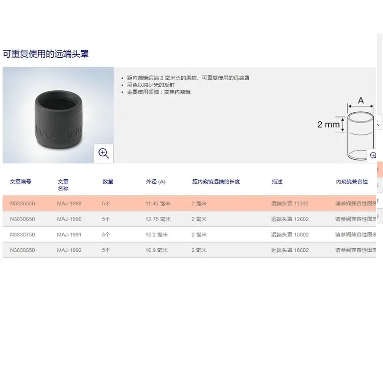 产品规格:本产品为可重复使用产品,外径11.45mm,距远端长度2.0mm,