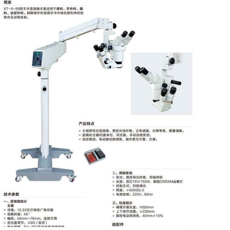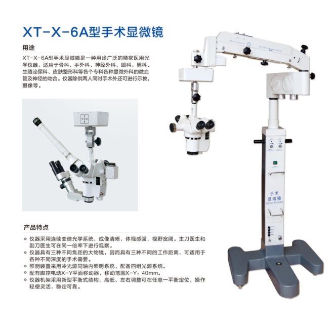 XT-X-8A型手术显微镜主要适用于耳鼻喉科、神经外科、泌尿外科的检查和显微手术及动物实验。