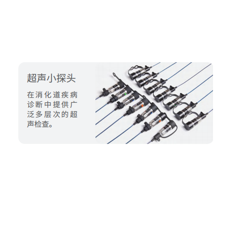 产品概述:丰富的声诊断设备与探头型号,其中包括小肠探头、细探头、双频探头、胆胰探头