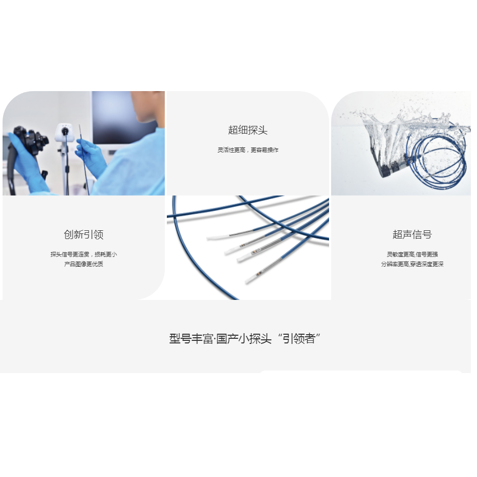 (带导丝腔)、双频胆胰探头(带导丝腔)等,直径从常用的 2.5 mm、2.0 mm,到较细的1.7 mm、