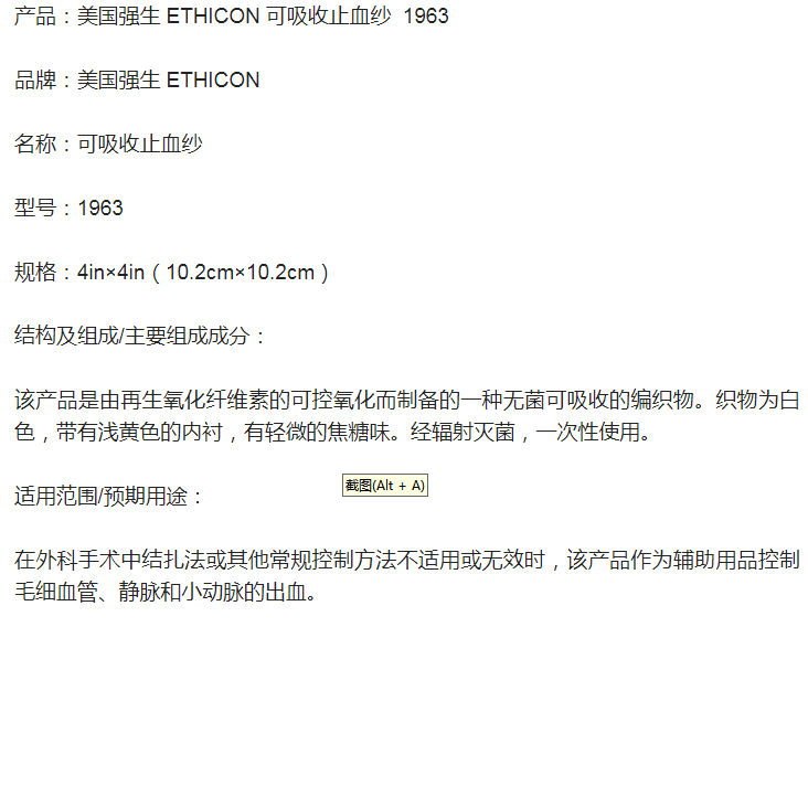 美国强生ETHN可吸收止血纱1963产品介绍: