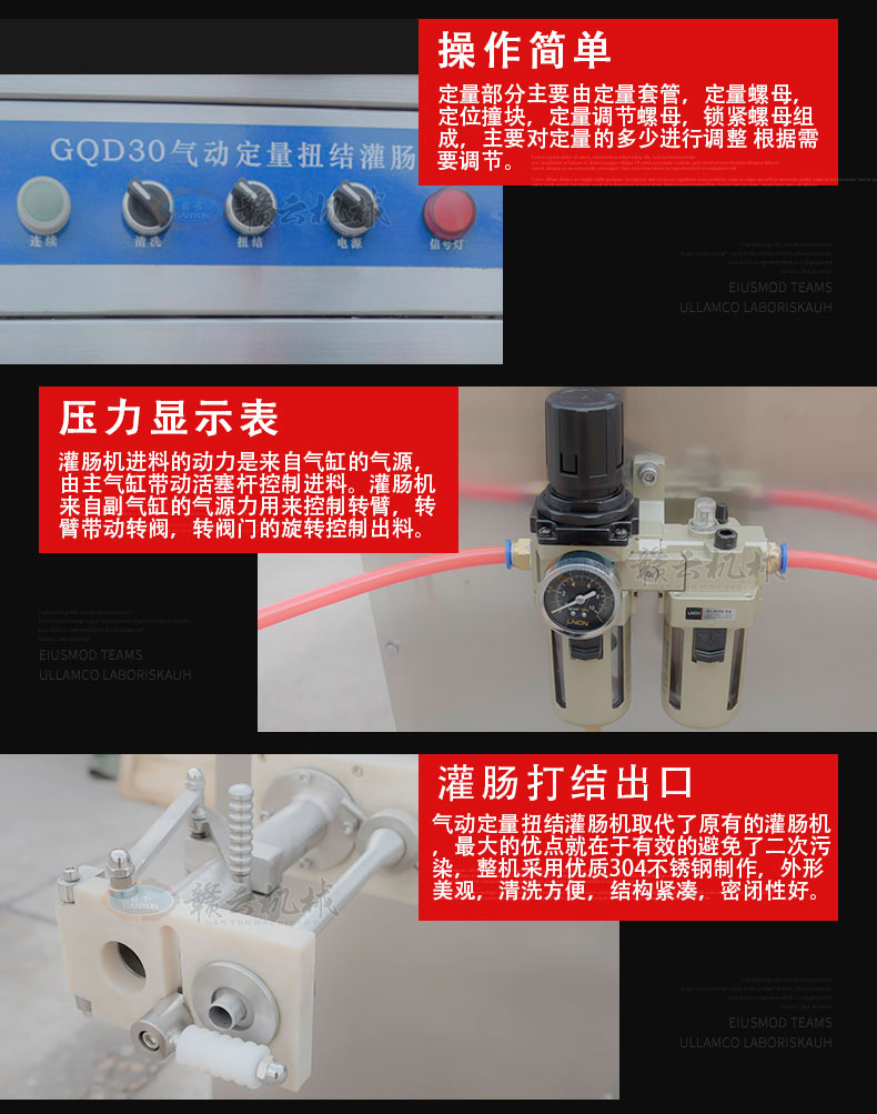 本款设备是赣云的专门用于制作香肠、火腿肠等肠类的设备,改变了以往灌制香肠和肠类打结扎线需要不同设备进行操作的局面,整台机子操作简单方便,自动化程度更高,减少了人工工作的强度。