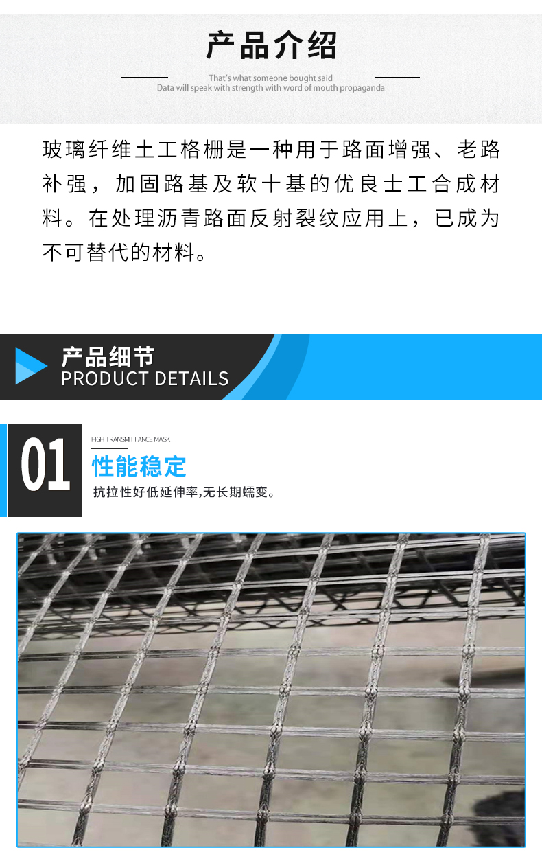 应用于沥青路面、水泥路面及路基的增强和铁路路基、堤坝护坡机场跑道等工程项目 |